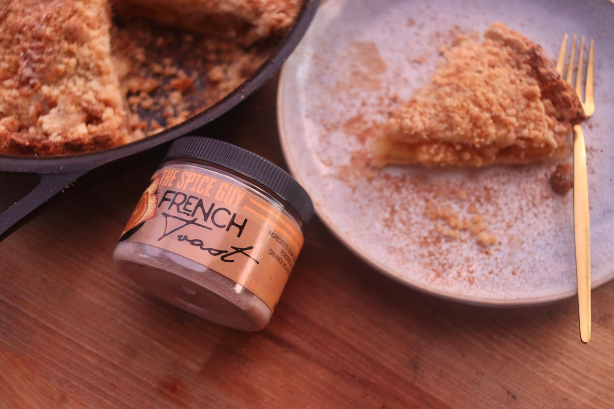 In a skillet on medium high, brown ½ stick of butter and add the sliced apples. Cook for about 5 minutes then bring to a simmer. Add 2 tbsp French Roast by the Spice Guy, 4 tbsp brown sugar, and 2 oz Bourbon. Simmer for 10-12 minutes then let cool.