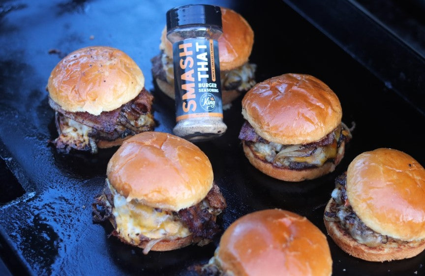 Did someone say SMASHBURGERS? This recipe features Smash That Burger Seasoning by The Flat Top King, Coffee BBQ Sauce by Torchbearer Sauces, Apple Moonshine BBQ Sauce by Southern City Flavors