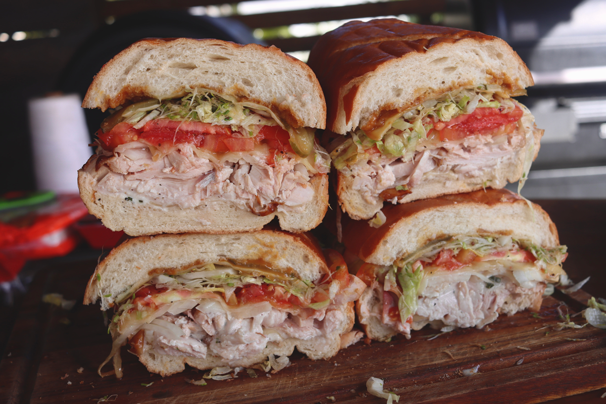 Turkey makes amazing sandwiches or salad for brunch. I like to pile up a French loaf with turkey, cheese, onion, tomato, bacon, crushed chips and homemade ranch for a crazy good sandwich, for my family the next morning.
