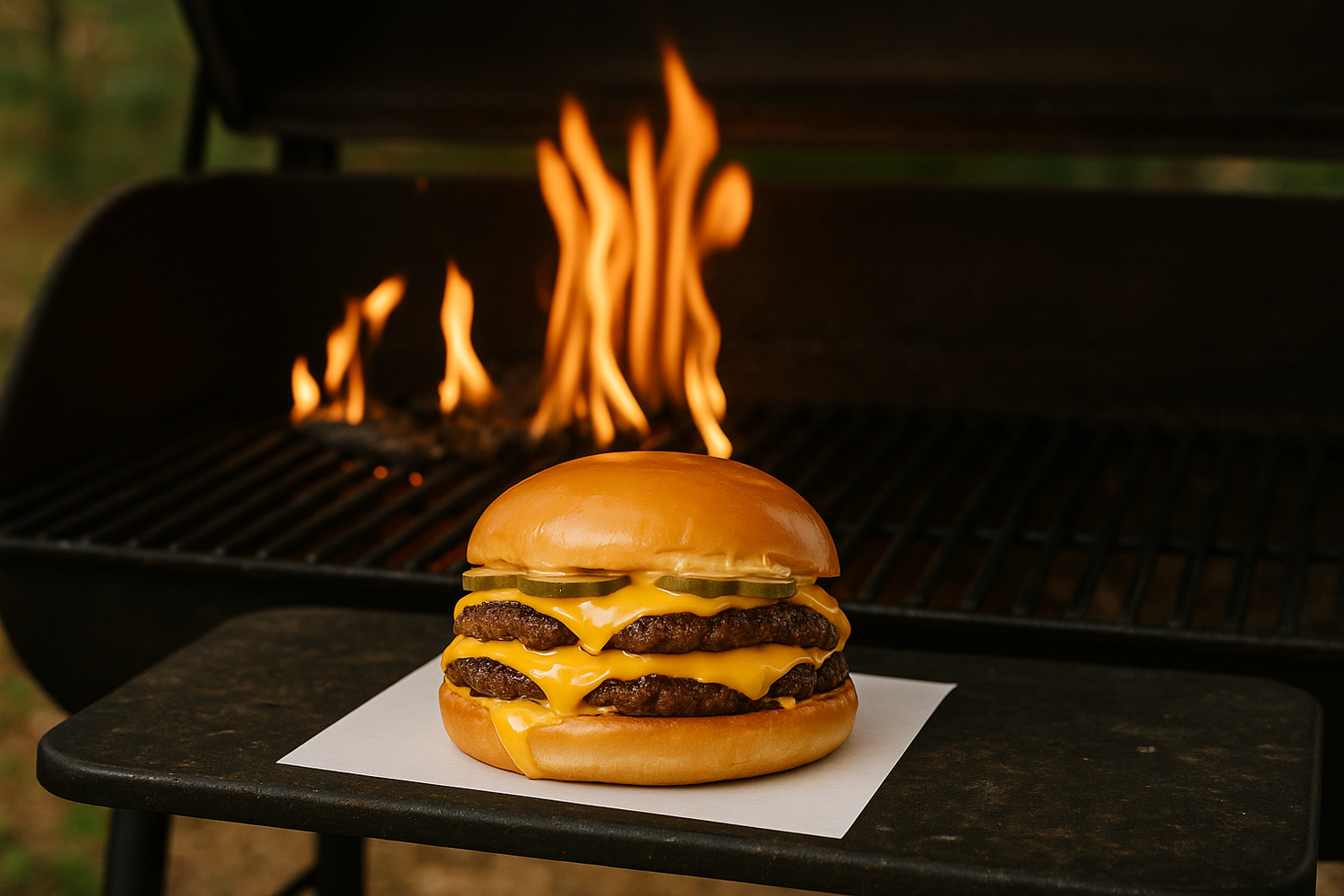 This bold take on the classic smashburger brings together deep, savory umami from the All Night Low & Slow Rub from Ninjacue, and a tangy, zesty finish from Kinzie’s Pickle BBQ Sauce. Perfect for cookouts, game day, or anytime you're craving a burger with serious personality.