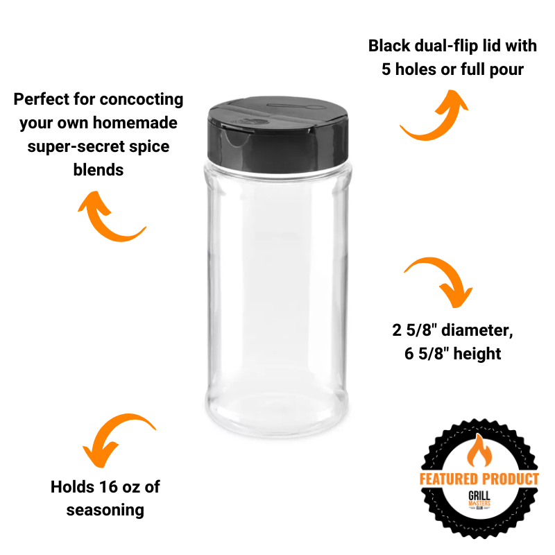 Great for backyard BBQers, competitive pitmasters, and anyone who loves to have their favorite spice blends ready to go. Whether you're mixing up your signature dry rub or storing a hefty batch of your go-to BBQ seasoning, this 16 oz shaker gets the job done!