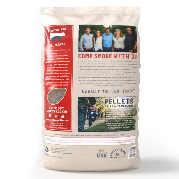 100% Almond Wood BBQ Pellets: Crafted for the Grill Master in all of us. Experience Almond Wood for yourself, with the FIRST and ONLY Almond Wood pellets available anywhere.