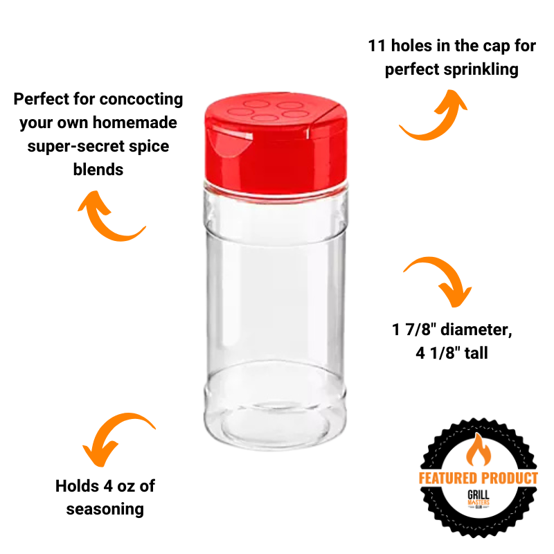 Keep your spices fresh, organized, and easy to sprinkle with our 4 oz Reusable Plastic Spice Shakers! Made from durable, clear PET plastic, these shakers are lightweight, impact-resistant, and built to last. Each shaker features a vibrant red flip cap — making them perfect for homemade spice blends for your next backyard BBQ.