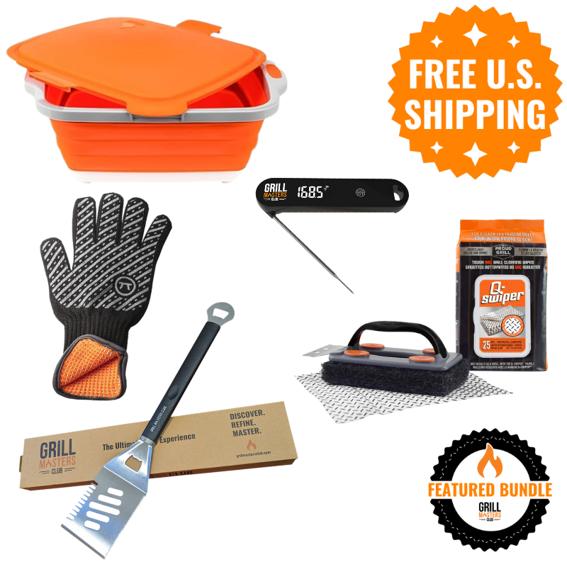 BBQ Champion's Bundle: Prep Tub, Grill Glove, Grill Cleaner, Spatula & Grilling Gloves