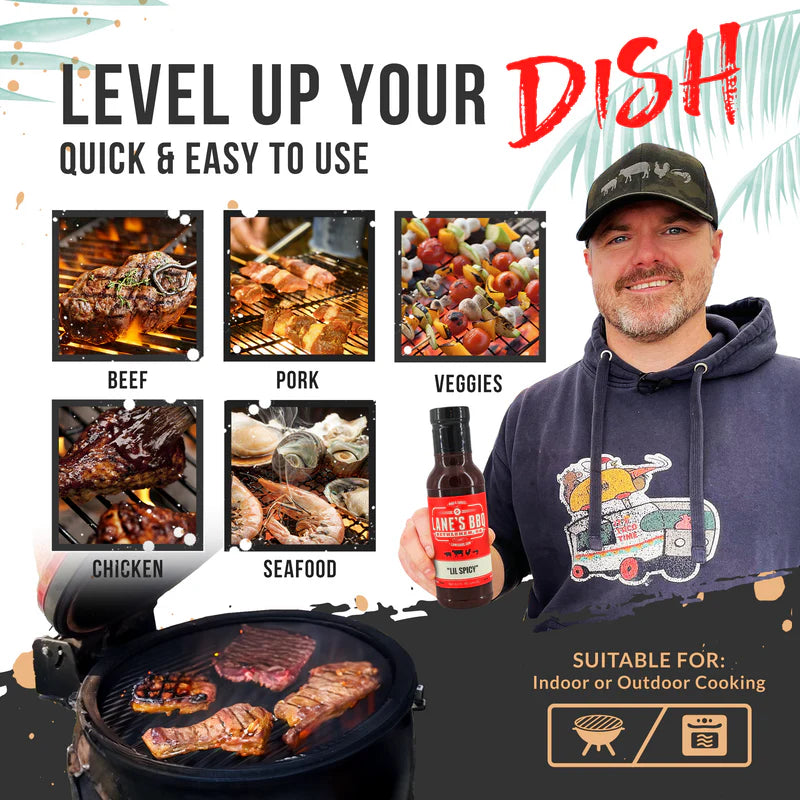 Whether you're slathering it on ribs, brushing it on grilled chicken, or using it as a zesty dipping sauce, “Lil’ Spicy” delivers that mouthwatering sweet-heat flavor combo that keeps taste buds coming back for more.
