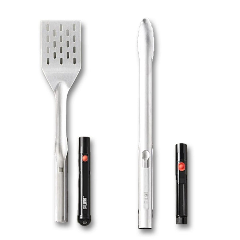 Level-up your grilling game with the Grillight 2-piece Gift Set featuring their Original Grillight Spatula and Smart Tongs -- with built-in LED flashlights!