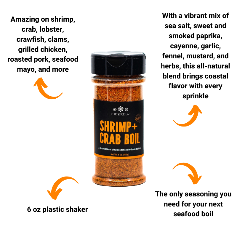 Turn up the flavor at your next seafood feast with this bold and zesty Shrimp + Crab Boil Seasoning by The Spice Lab.