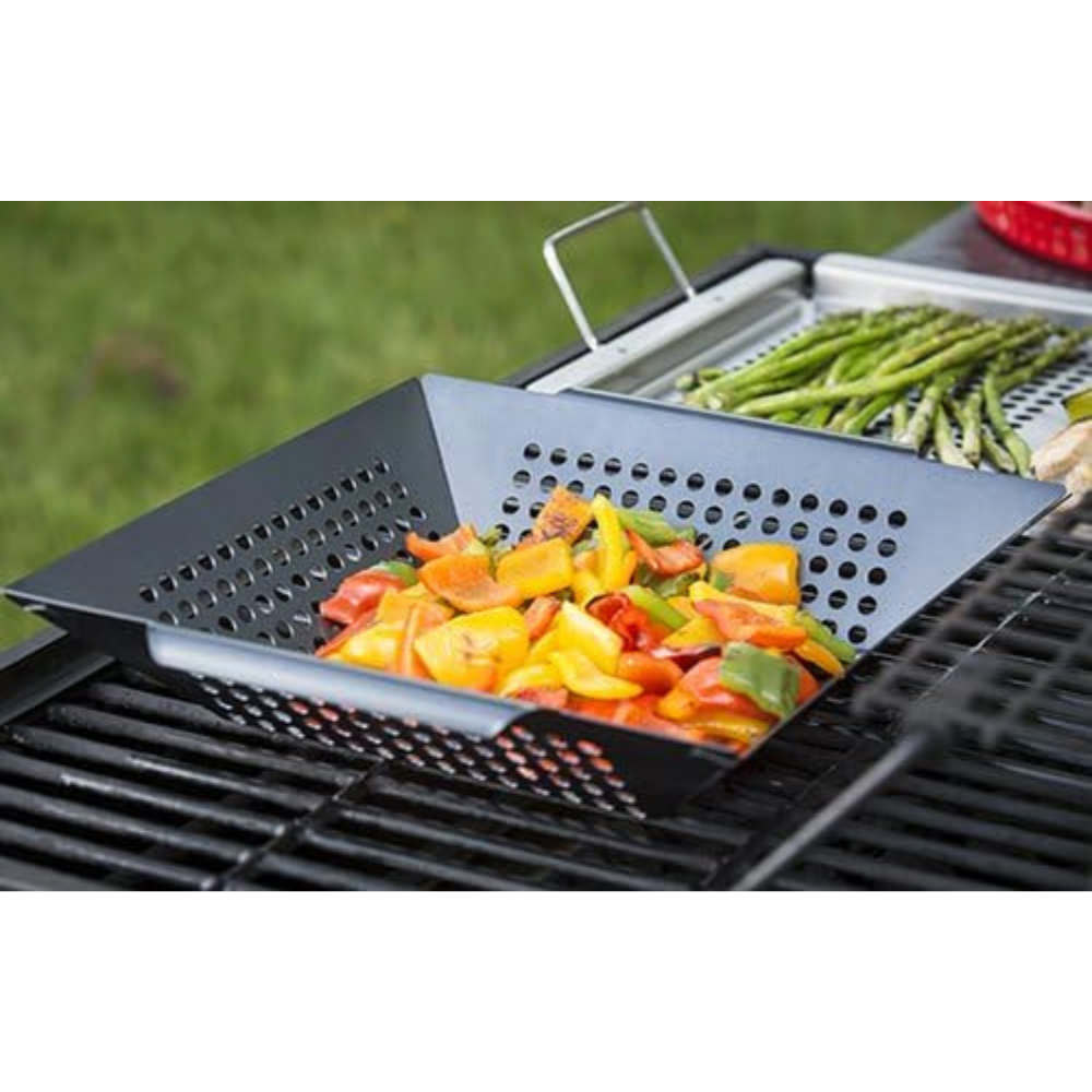 Grill smarter, not harder. Tall 3" sides keep small bites from falling through grates; non-stick coated steel for easy release & quick cleanup. Dual handles make shake-tossing and transport a breeze.