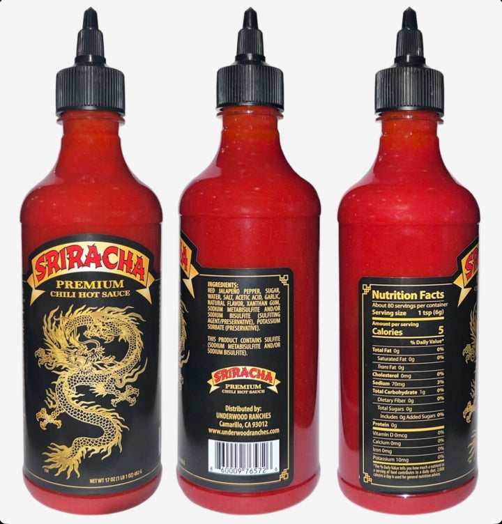 About: Underwood Ranches Dragon Sriracha sauce is a fiery blend crafted to ignite your taste buds with an explosion of flavor. Made with premium red jalapeño peppers grown under the Californian sun by Underwood Ranches themselves, this sauce boasts a perfect balance of heat and flavor.